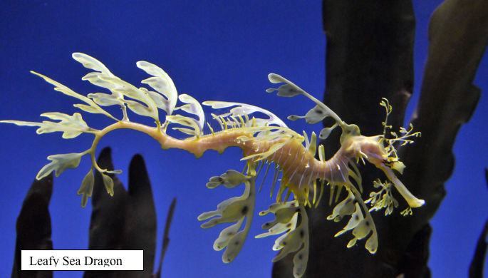As far as aquariums go, the Monterey Aquarium is top notch.  One of the exhibits that completely captivated us was the Sea Horse exhibit.  This was one of the most outstanding exhibits we have ever seen of this particular animal.  It was easy to spend an hour or more watching and trying to photograph these amazing little creatures.  Although there were about 15 different varieties of sea horses on exhibit, the two most fascinating to me were the “sea dragon” and the “leafy sea dragon”.  These creatures are not sea horses per se but are related to the sea horse.  They survive in their native habitat off the Australian and Tasmanian Coast through the use of amazing camouflage that keeps them well hidden in the sea weed and sea kelp of their environment.