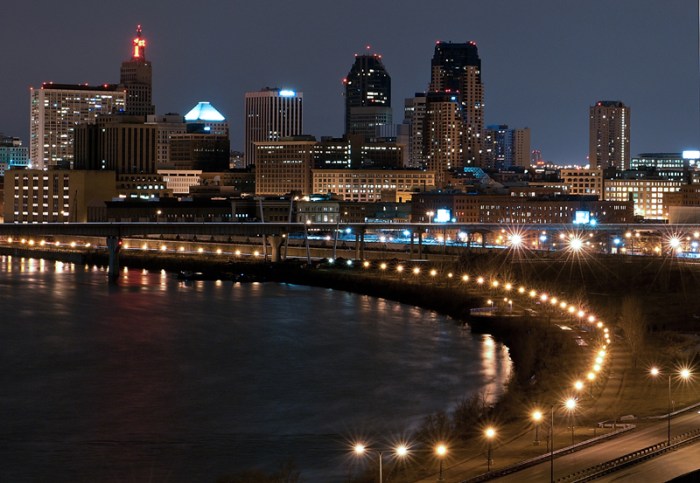 This second image depicts the St. Paul skyline looking north from a bluff in Mounds Park. This shot was also a long exposure taken from the very edge of the bluff about 100 feet straight up from the highway below.