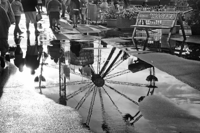 People walk around looking at everything around from eye-level.  Sometimes the best images can be had by looking down.  Reflecting images  have impact in part because they present a new and different point of view to the viewer.