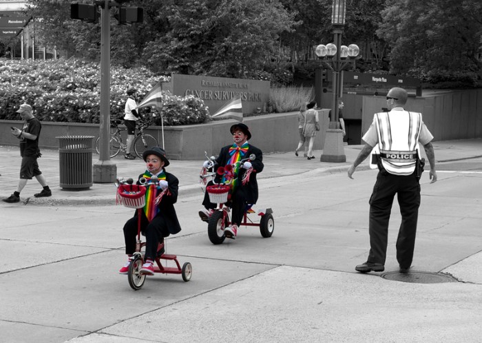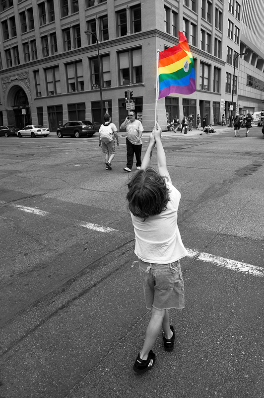 Finally, I focused on the image I have of the younger boy waiving the rainbow flag and decided I needed to isolate the flag by bringing back its color into that B & W image. It worked for me, so I used the treatment on other images I thought would benefit from adding some color back into the image to emphasize the main subject. The images below are some of the images given this treatment.