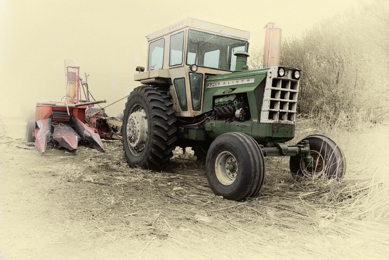 This image was processed with “Antique Plate 2” in Silver Efex Pro 2 with the center selectively removed to show the light spring leaves on the trees contrasting with the dark shed. The green farm machinery on the right adds a little balance to the composition.