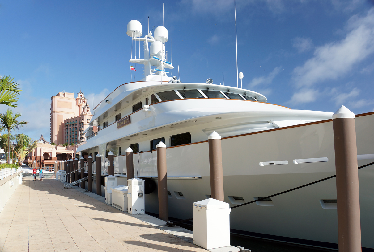The resort at Atlantis has its own harbor and is a short distance from the United States. So it attracts a wide variety of boats from large super yachts to smaller fishing vessels.