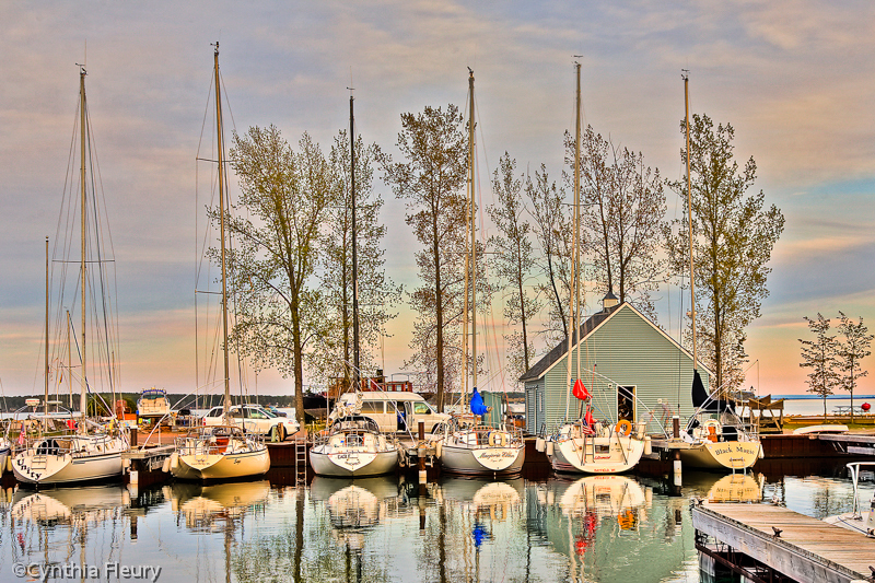This image is part of a portfolio of images taken around Lake Superior. The marina is on the southern shore in Bayfield, Wisconsin. For a few moments, the spring morning sunlight produced a palette of pastel colors. The image is a painterly composite of five images taken at different exposures to produce a high dynamic range of colors. The moment was very calm and the rapidly changing light was magical as the sun rose to my left.