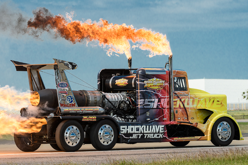 Shockwave Published November 16, 2016 at 800 × 533 Chris Darnell driving the Shockwave jet truck at the 2016 Bell Helicopter / Ft Worth Alliance Air Show. © Larry Grace